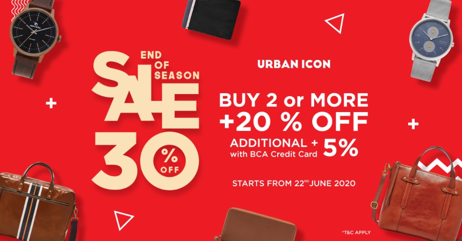 Kamu bisa dapatkan Diskon 30% + 20% di Urban Icon, tapi tidak termasuk smartwatch. Catatan lain, produk yang sudah dibeli tidak bisa ditukar atau dikembalikan. Sebelum kehabisan produk yang kamu mau, ingat tanggalnya. Promo End of Season Sale berlangsung dari 22 Juni hingga 5 Juli 2020 hanya di Urban Icon online store. Ayo, cepat masukkan keranjang dan check out.