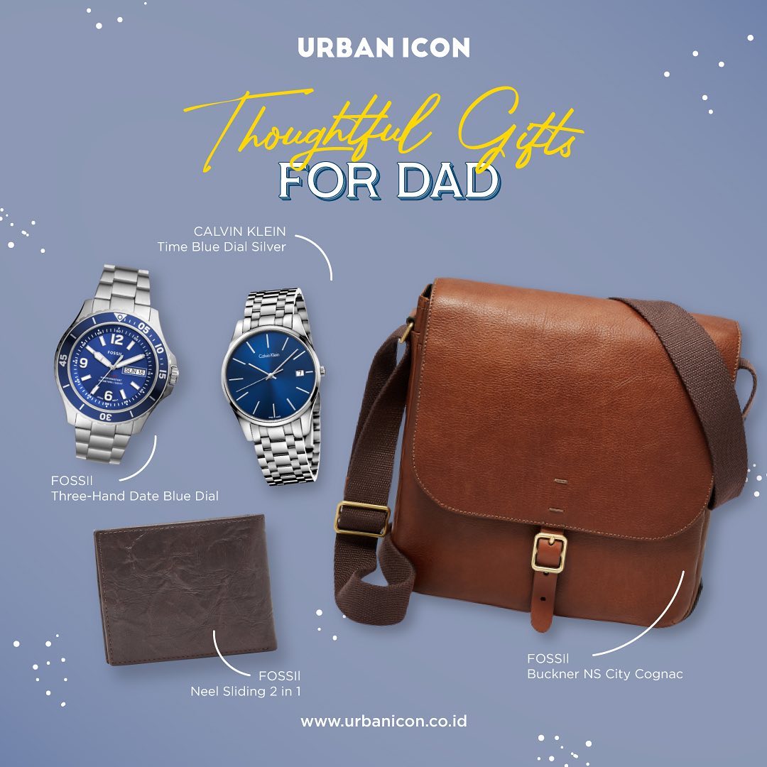 Dapatkan jam tangan, tas, dan dompet untuk hadiah Hari Ayah Nasional hanya di Urban Icon online store. Tips: beli dengan promo diskon yang sedang berjalan di Urban Icon supaya harganya lebih affordable. Untuk pembelian jam tangan, pasti disertai garansi resmi yang bisa langsung diklaim di WatchCare, lho. Selamat Hari Ayah! Mudah-mudahan ayah suka dengan hadiah aksesori stylish pemberian kamu, ya!