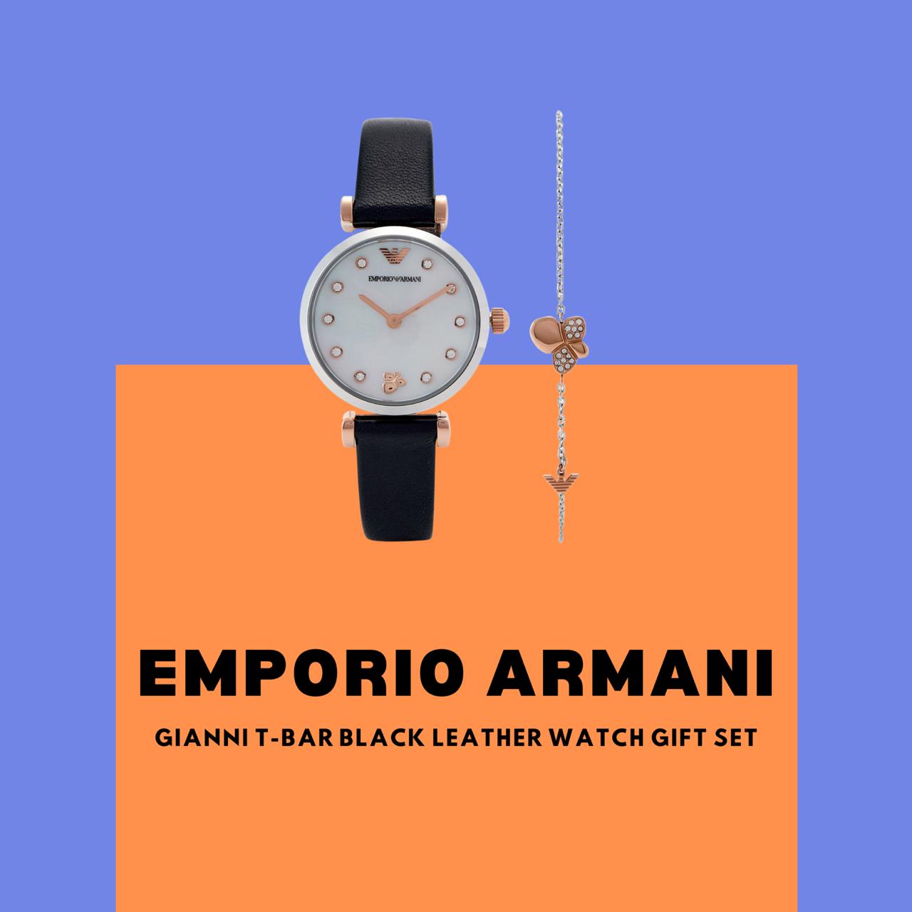 Our recommendation: Emporio Armani Gianni T-Bar Black Leather Watch Gift Set