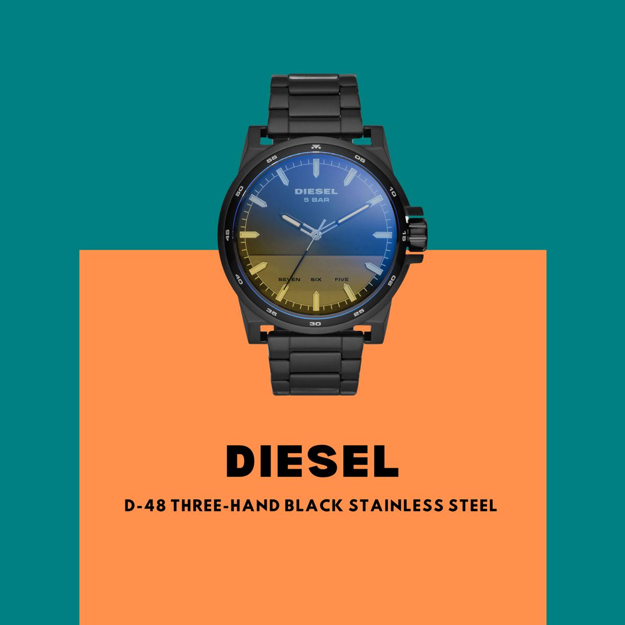 Our recommendation: Diesel D-48 Three-Hand Black Stainless Steel Watch