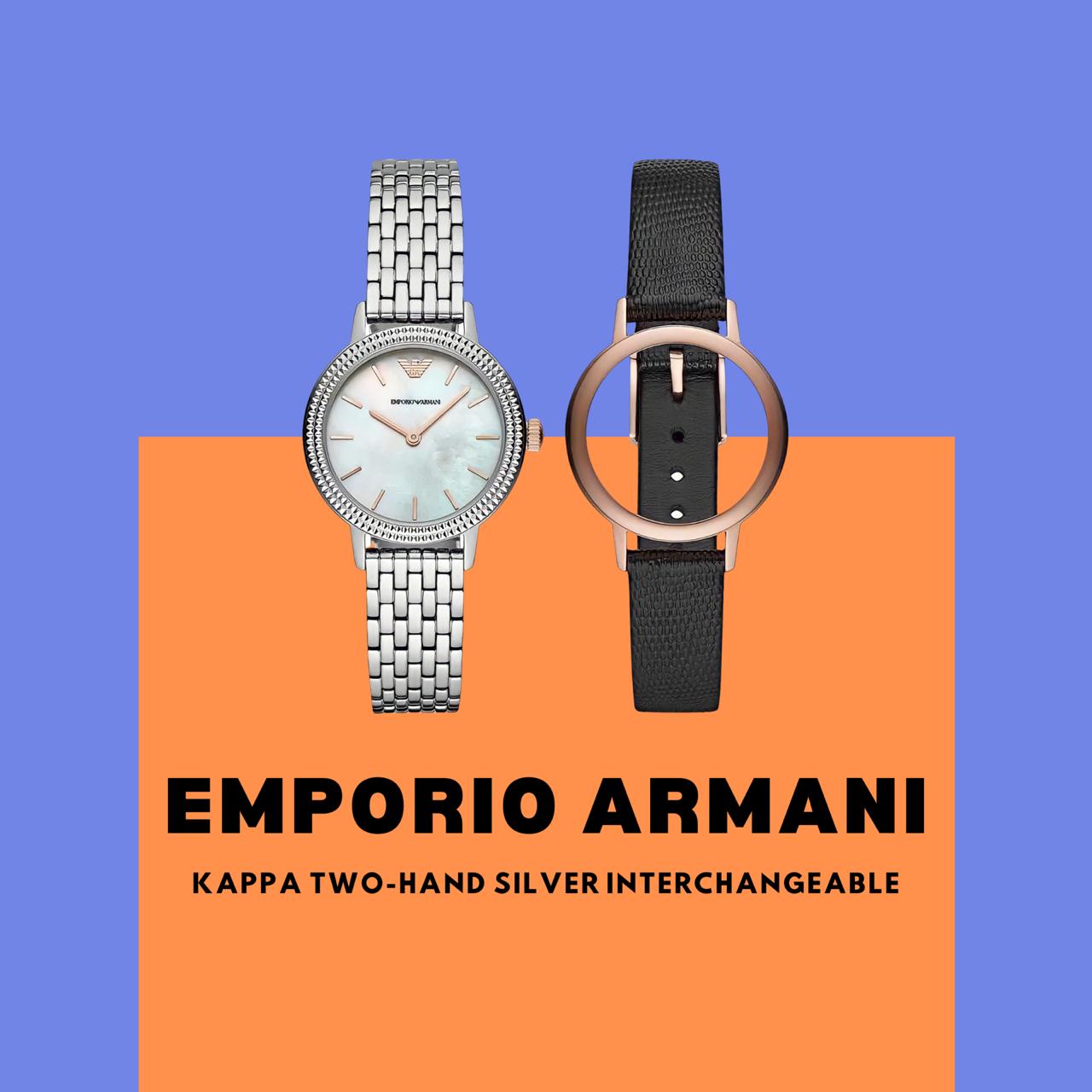 Our recommendation: EMPORIO ARMANI Kappa Two-Hand Silver Stainless Steel Interchangeable Watch Set