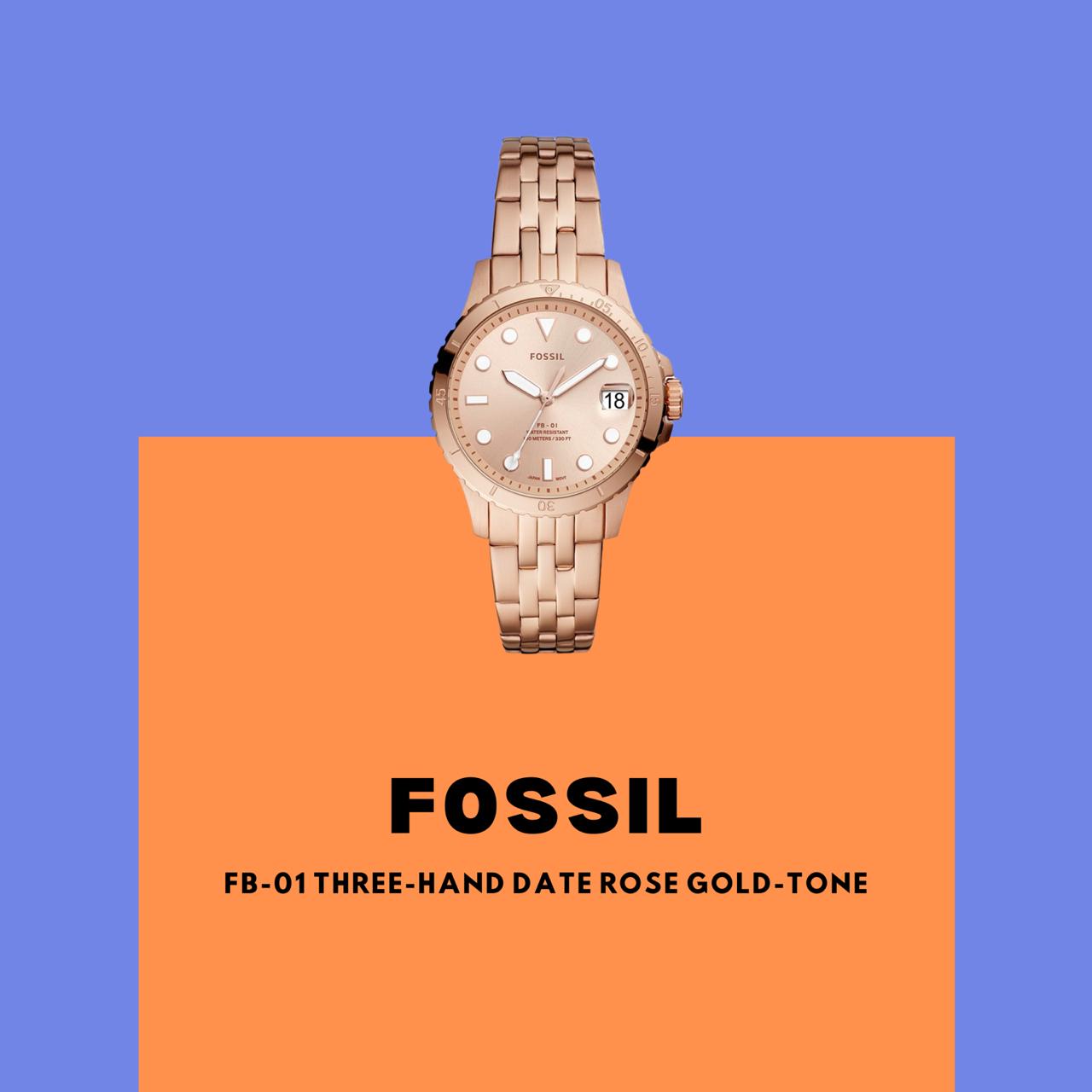 Our recommendation: Fossil FB-01 Three-Hand Date Rose Gold-Tone